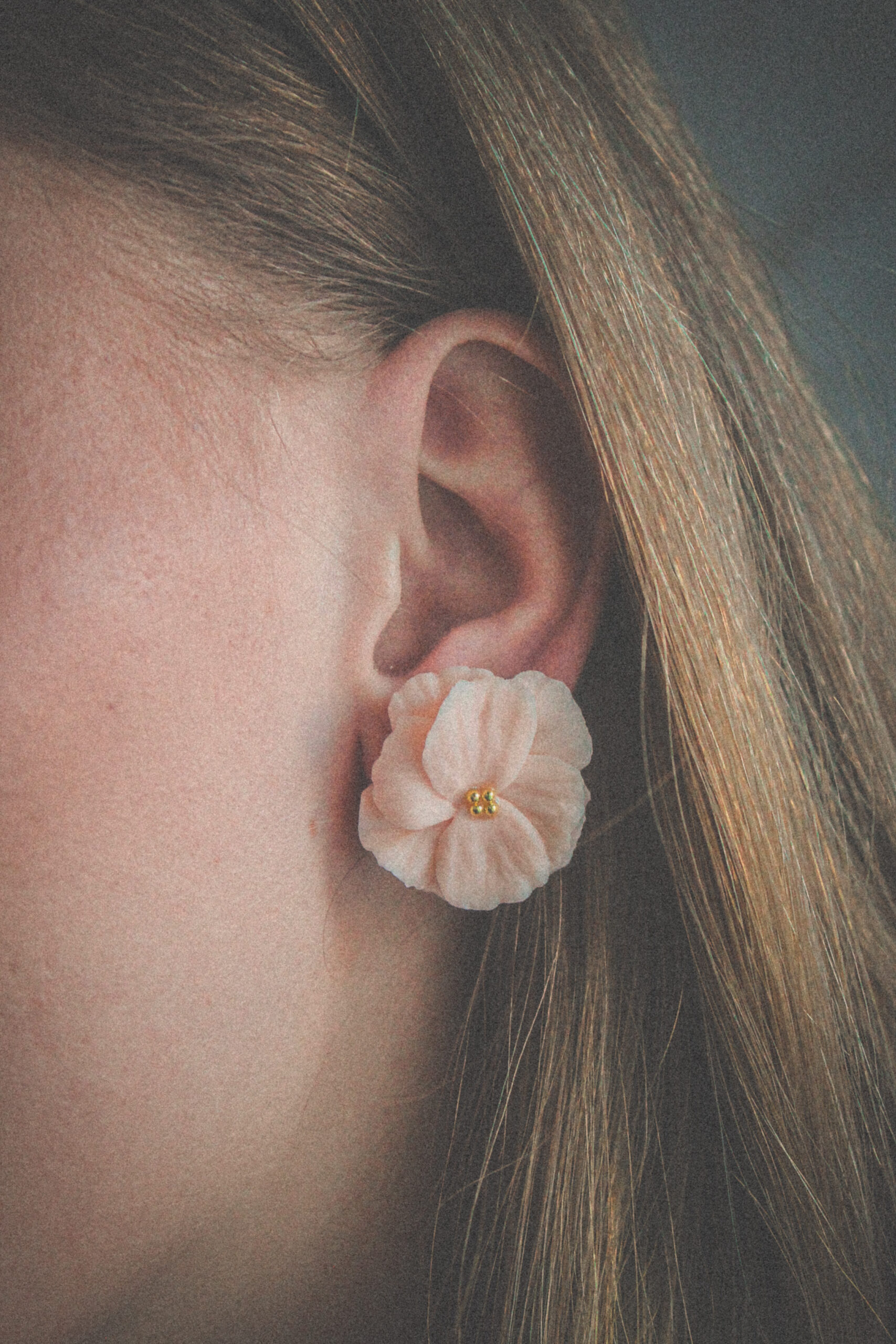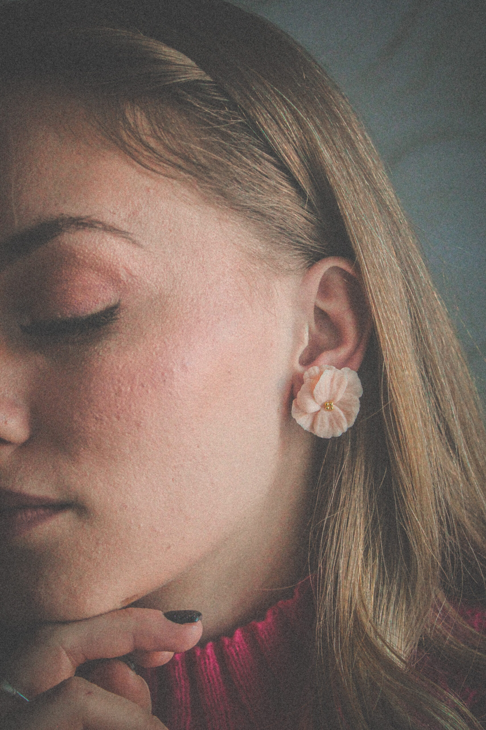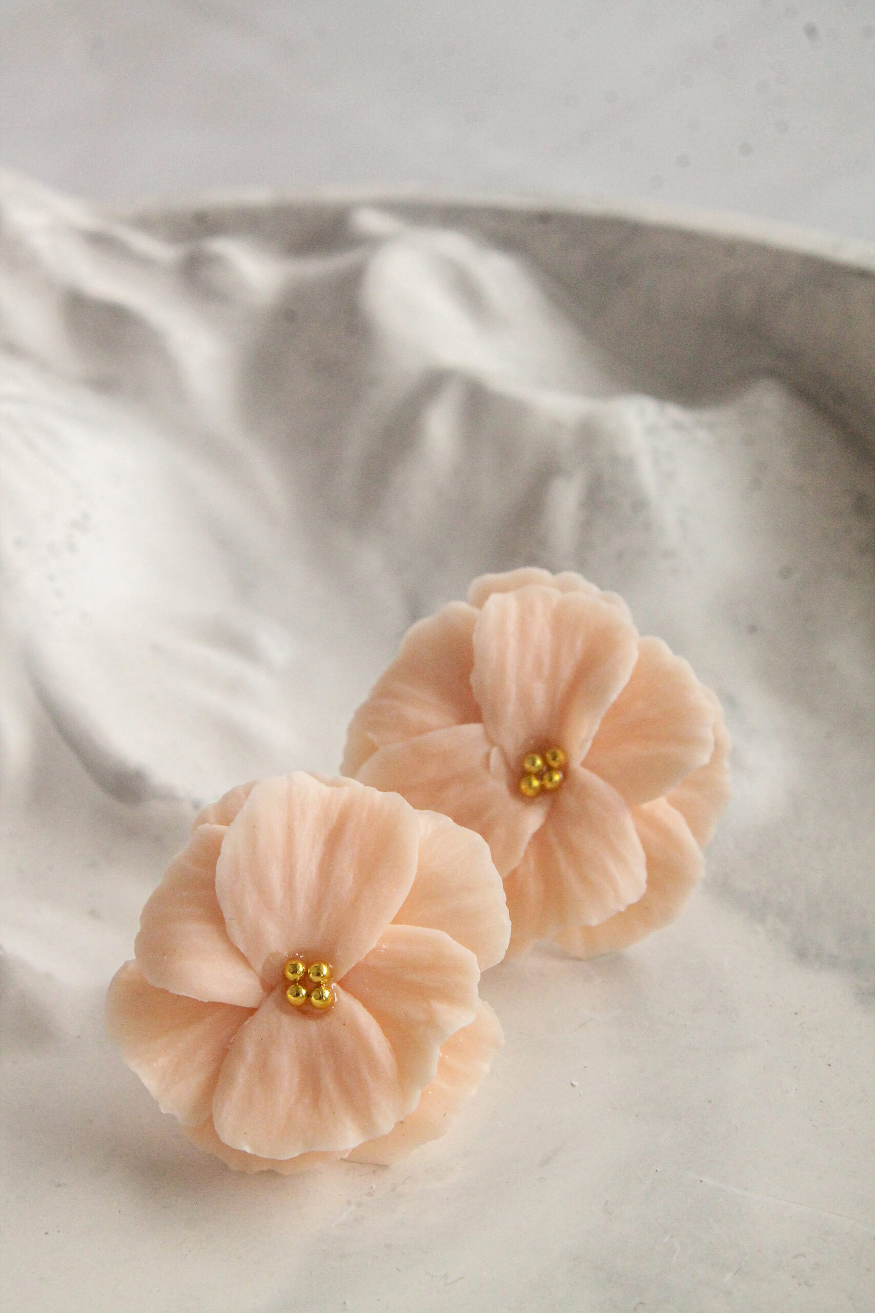 Soft, delicate, and effortlessly feminine — these blush-toned floral studs are the perfect balance of simplicity and elegance. The finely textured petals create a lifelike flower design, finished with subtle gold details at the center.