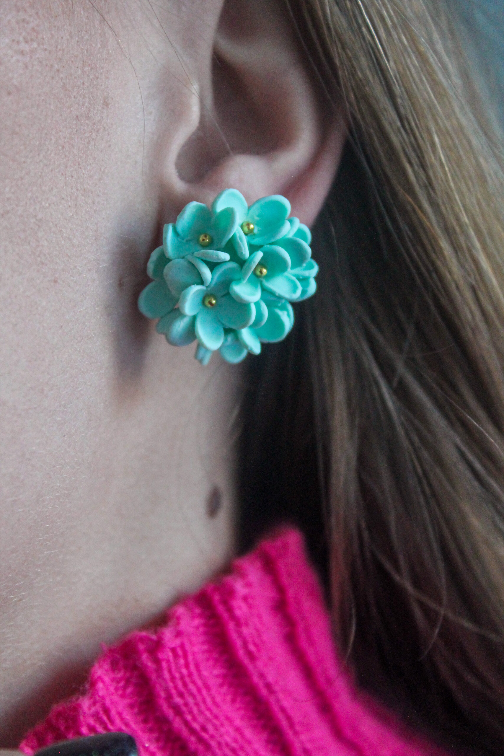 Each pair is handcrafted from polymer clay, with carefully placed gold accents at the center of each flower for a subtle touch of elegance.